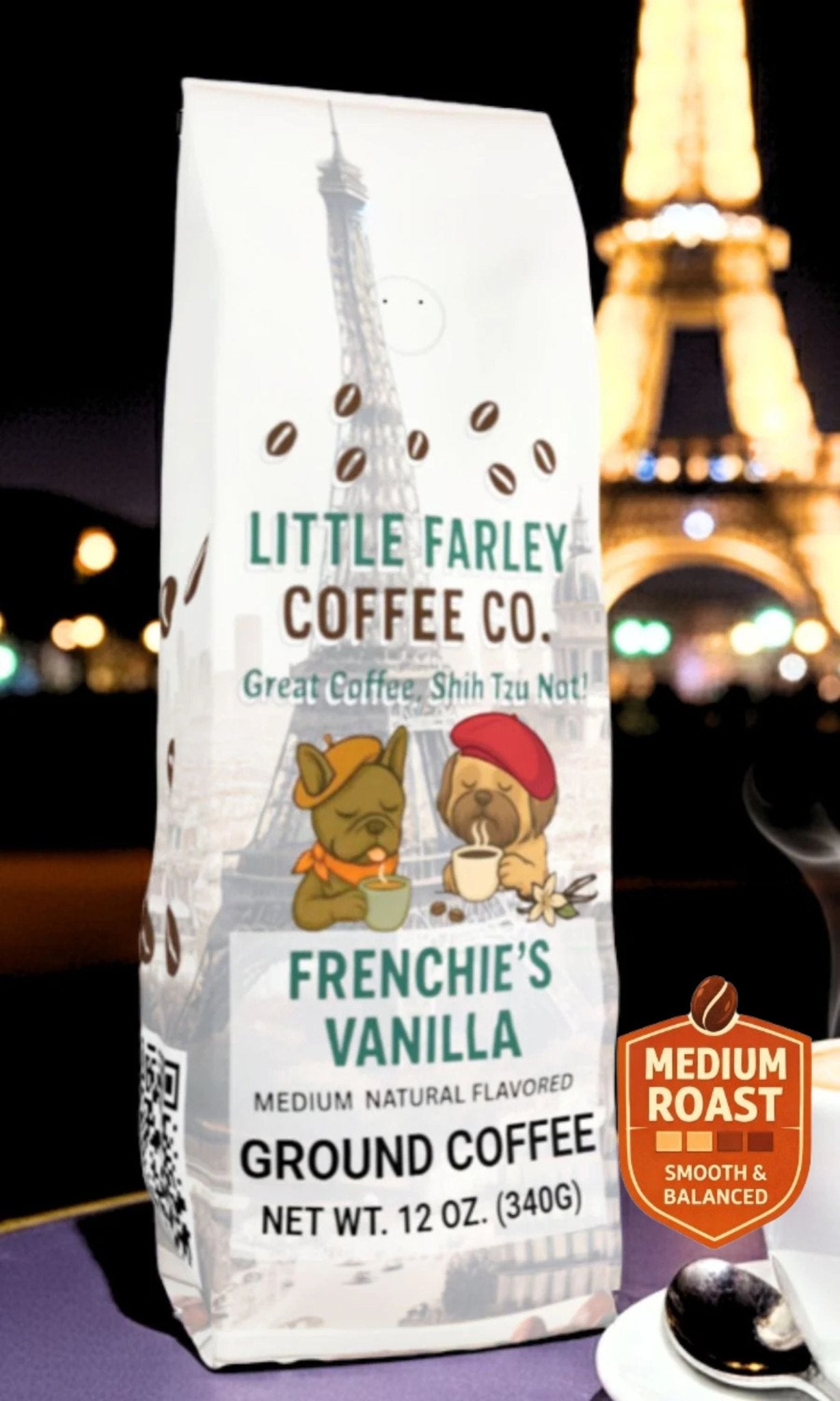 Frenchie’s Vanilla is smooth, elegant, and just a little cheeky. A medium roast infused with warm, natural vanilla that feels like a stroll through Paris (beret optional). Inspired by Frenchie’s sweet and playful spirit, this blend adds sophistication and comfort to your daily cup.