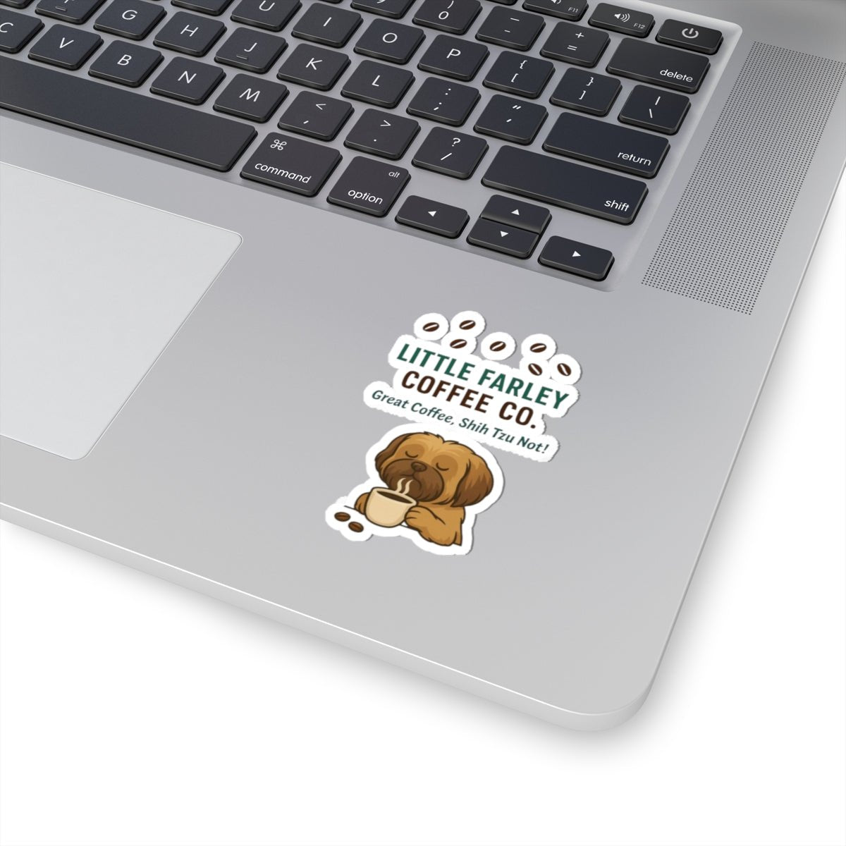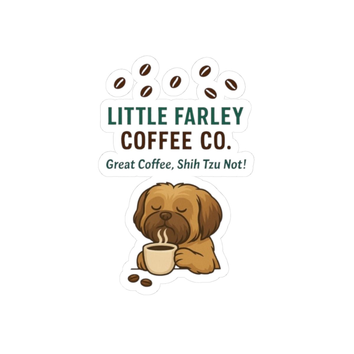 Little Farley Coffee Co. Sticker — "Great Coffee, Shih Tzu Not!" Kiss-Cut Dog & Coffee Decal