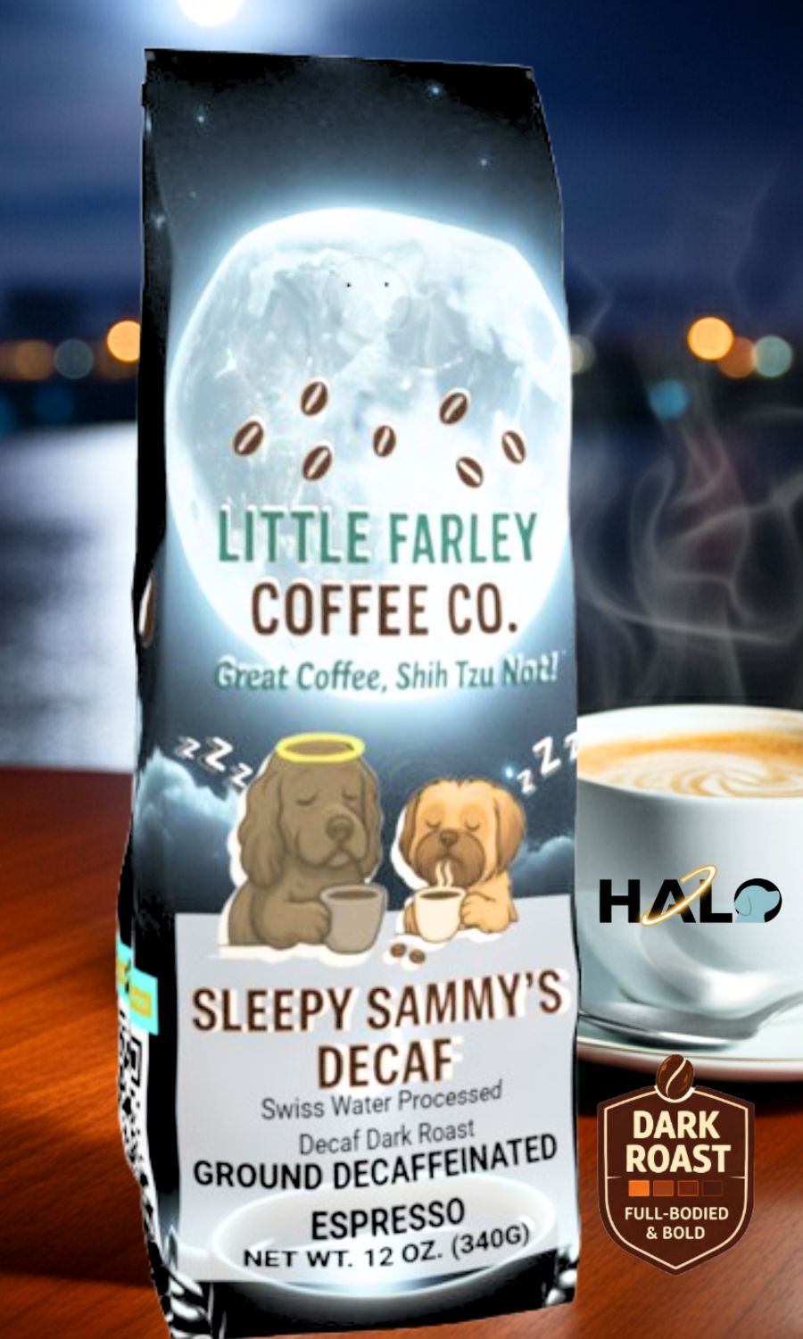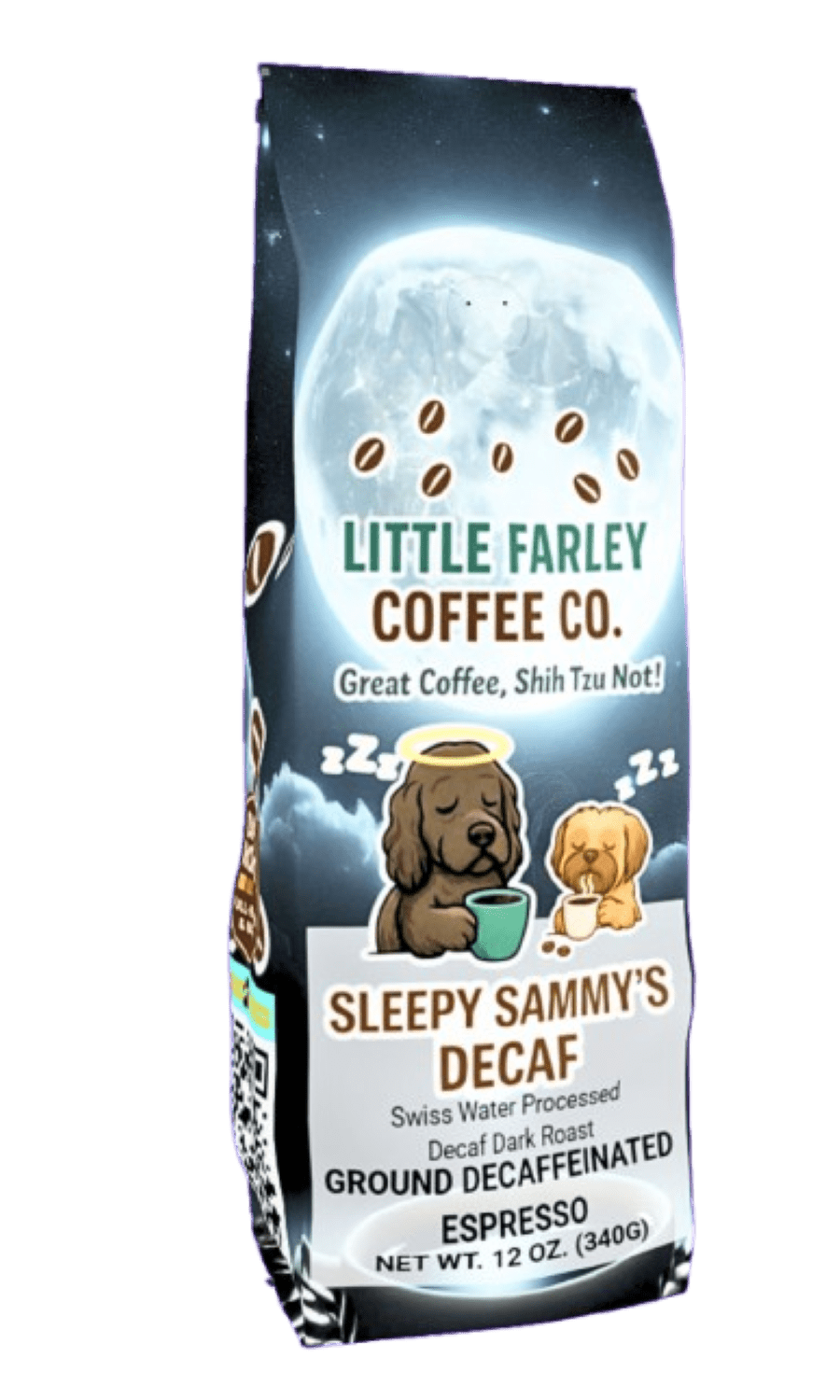 Sleepy Sammy’s Decaf – Swiss Water® Process Dark Roast Ground Espresso (12oz)